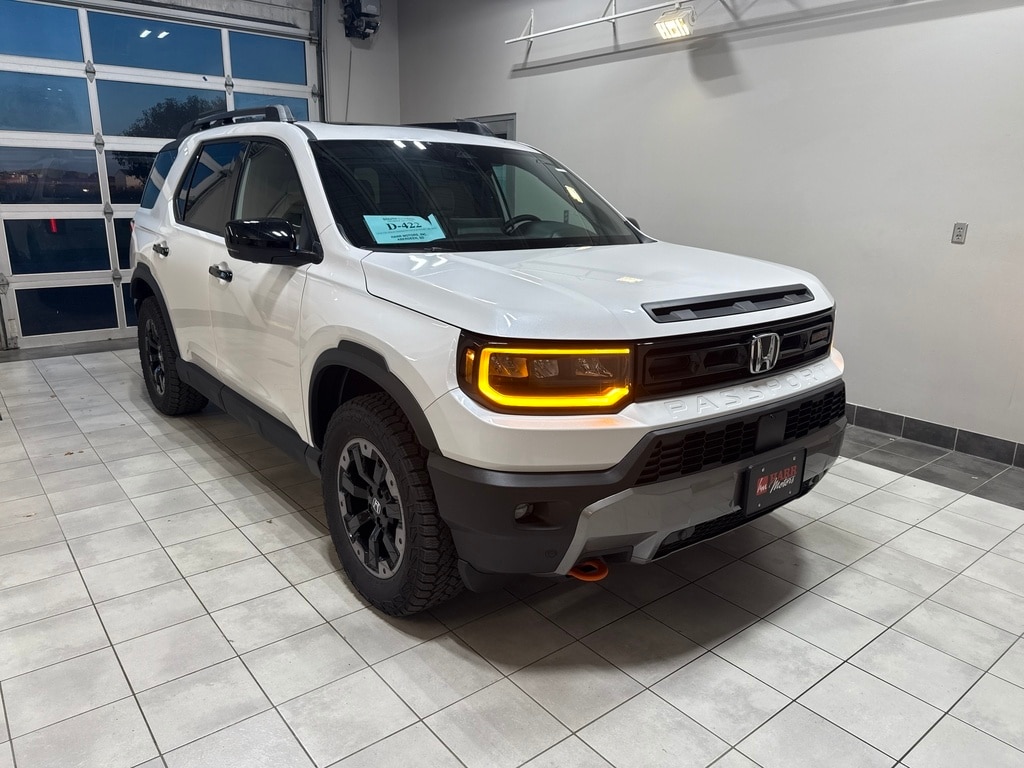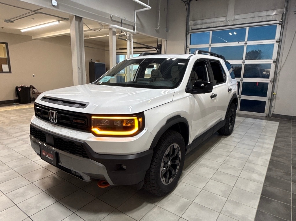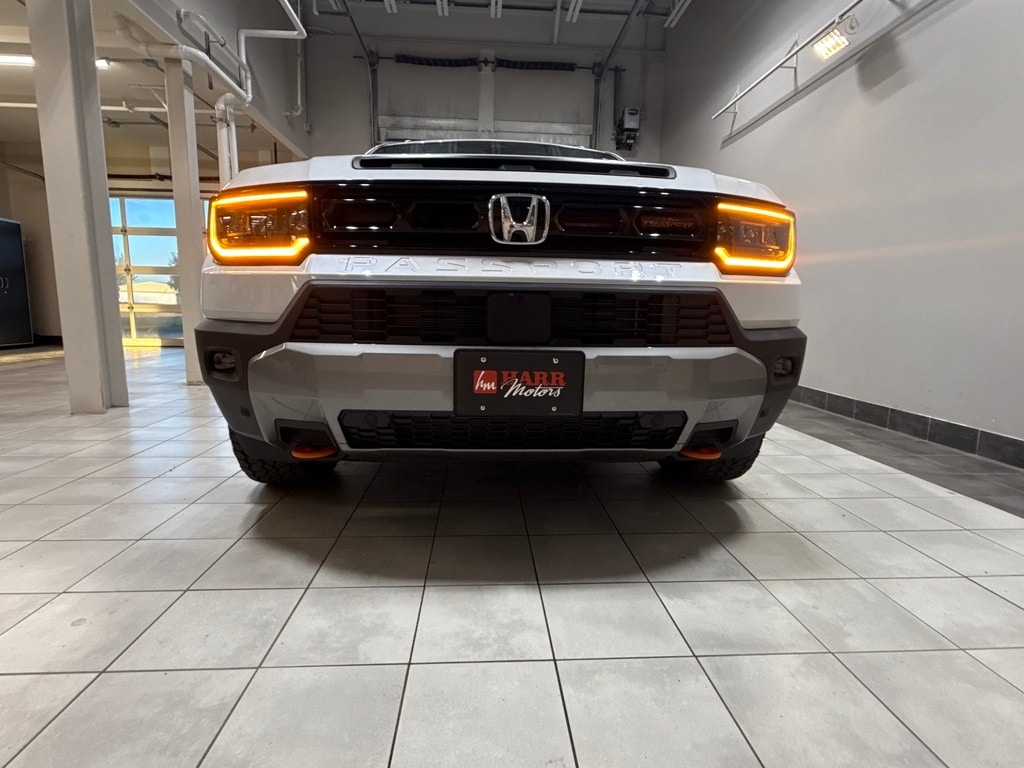 Harr Honda is pleased to offer this 2026 Honda Passport TrailSport Elite in Platinum White Pearl, Beautifully equipped with 12 Speakers, 4-Wheel Disc Brakes, ABS brakes, Adaptive Cruise Control: Adaptive Cruise Control (ACC) with Low-Speed Follow, Air Conditioning, Alloy wheels, Apple CarPlay/Android Auto, Auto High-beam Headlights, Auto-dimming door mirrors, Auto-dimming Rear-View mirror, Automatic temperature control, Blind Spot Information (BSI) System warning, Brake assist, Compass, Delay-off headlights, Driver door bin, Driver vanity mirror, Driver's Seat Mounted Armrest, Dual front impact airbags, Dual front side impact airbags, Electronic Stability Control, Emergency communication system: HondaLink, Exterior Parking Camera Rear, Four wheel independent suspension, Front anti-roll bar, Front Bucket Seats, Front Center Armrest, Front dual zone A/C, Front fog lights, Front reading lights, Fully automatic headlights, Heated & Ventilated Front Bucket Seats, Heated door mirrors, Heated front seats, Heated rear seats, Heated steering wheel, HVAC memory, Illuminated entry, Knee airbag, Lane departure: Lane Keeping Assist System (LKAS) active, Leather steering wheel, Low tire pressure warning, Memory seat, Navigation system: Google Maps, Occupant sensing airbag, Outside temperature display, Overhead airbag, Overhead console, Panic alarm, Passenger door bin, Passenger seat mounted armrest, Passenger vanity mirror, Perforated Leather Seat Trim, Power door mirrors, Power driver seat, Power Liftgate, Power moonroof, Power passenger seat, Power steering, Power windows, Radio data system, Radio: Bose Premium Sound System w/12 Speakers, Rain sensing wipers, Rear air conditioning, Rear anti-roll bar, Rear reading lights, Rear seat center armrest, Rear window defroster, Rear window wiper, Remote keyless entry, Security system, Speed control, Speed-sensing steering, Split folding rear seat, Spoiler, Steering wheel mounted audio controls, Tachometer, Telescoping steering wheel, Tilt steering wheel, Traction control, Trip computer, Turn signal indicator mirrors, Variably intermittent wipers, Ventilated front seats, and Wheels: 18" Berlina Black Machine Face Alloy!