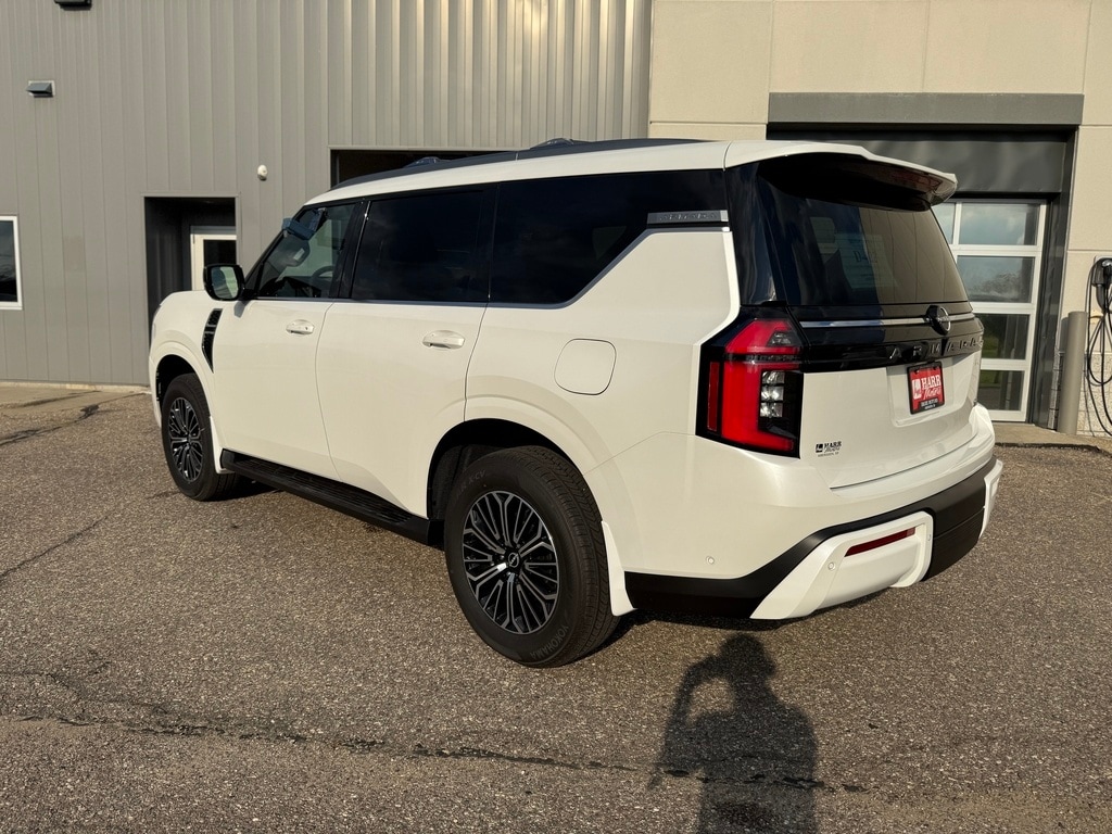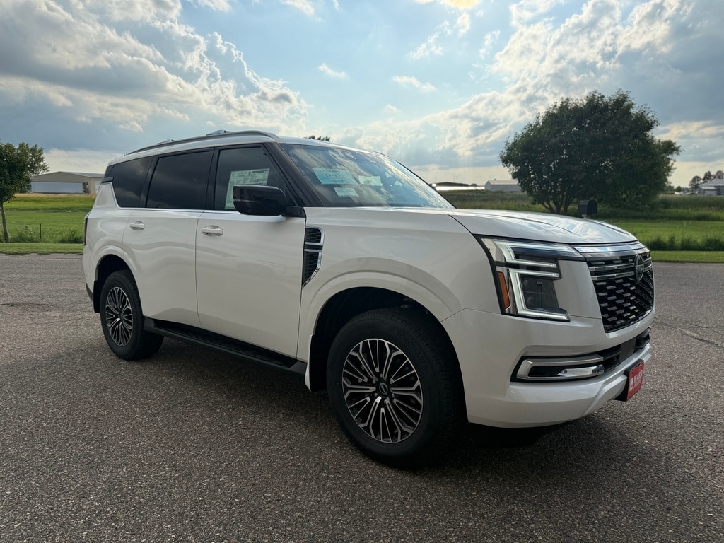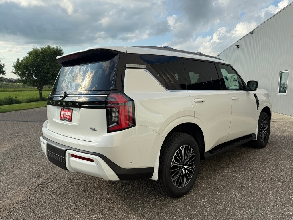 4WD. Harr Nissan is pleased to offer this 2025 Nissan Armada SL in Aspen White Tricoat, Beautifully equipped with 4WD, 12 Speakers, 20" Painted Alloy Wheels, 3rd row seats: split-bench, 4-Wheel Disc Brakes, ABS brakes, Air Conditioning, Alloy wheels, AM/FM radio: SiriusXM, Anti-whiplash front head restraints, Auto High-beam Headlights, Auto tilt-away steering wheel, Auto-dimming door mirrors, Auto-dimming Rear-View mirror, Auto-leveling suspension, Automatic temperature control, Brake assist, Bumpers: body-color, Delay-off headlights, Driver door bin, Driver vanity mirror, Dual front impact airbags, Dual front side impact airbags, Electronic Stability Control, Emergency communication system: NissanConnect Services, Four wheel independent suspension, Front anti-roll bar, Front Bucket Seats, Front Center Armrest, Front dual zone A/C, Front reading lights, Fully automatic headlights, Garage door transmitter: myQ Connected Garage, Genuine wood dashboard insert, Heated door mirrors, Heated Front Bucket Seats, Heated front seats, Heated steering wheel, HVAC memory, Illuminated entry, Knee airbag, Leather steering wheel, Low tire pressure warning, Memory seat, Navigation System, Occupant sensing airbag, Outside temperature display, Overhead airbag, Overhead console, Panic alarm, Passenger door bin, Passenger vanity mirror, Power door mirrors, Power driver seat, Power Liftgate, Power passenger seat, Power steering, Power windows, Radio: NissanConnect w/SiriusXM 360L, Rain sensing wipers, Rear air conditioning, Rear anti-roll bar, Rear reading lights, Rear seat center armrest, Rear window defroster, Rear window wiper, Reclining 3rd row seat, Remote keyless entry, Security system, Speed control, Speed-sensing steering, Speed-Sensitive Wipers, Split folding rear seat, Spoiler, Steering wheel memory, Steering wheel mounted audio controls, Tachometer, TailorFit Seat Trim, Telescoping steering wheel, Tilt steering wheel, Traction control, Trip computer, Turn signal indicator