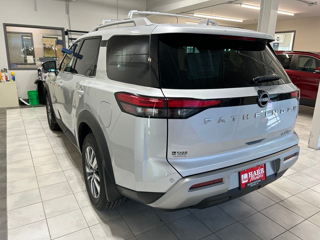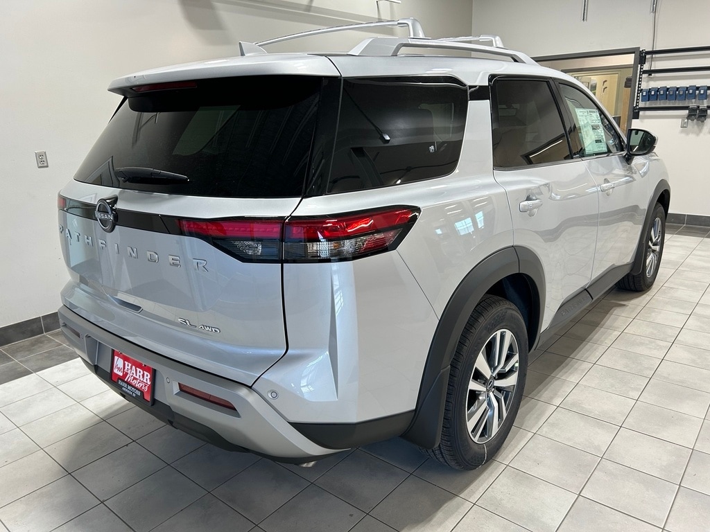 4WD. Harr Nissan is pleased to offer this 2025 Nissan Pathfinder SL in Brilliant Silver Metallic, Beautifully equipped with 4WD, 3rd row seats: bench, 4-Wheel Disc Brakes, 6 Speakers, ABS brakes, Air Conditioning, Alloy wheels, AM/FM radio: SiriusXM, Auto High-beam Headlights, Auto-dimming Rear-View mirror, Automatic temperature control, Bose Premium Audio System, Brake assist, Bumpers: body-color, Delay-off headlights, Driver door bin, Driver vanity mirror, Dual front impact airbags, Dual front side impact airbags, Electronic Stability Control, Emergency communication system, Exterior Parking Camera Rear, Four wheel independent suspension, Front anti-roll bar, Front Bucket Seats, Front Center Armrest, Front dual zone A/C, Front reading lights, Fully automatic headlights, Garage door transmitter: HomeLink, Heated door mirrors, Heated Front Bucket Seats, Heated front seats, Heated steering wheel, Illuminated entry, Knee airbag, Leather steering wheel, Leather-Appointed Seating Surfaces, Low tire pressure warning, Navigation system: NissanConnect with Navigation and Services, NissanConnect featuring Apple CarPlay and Android Auto, NissanConnect w/Navigation & Services, Occupant sensing airbag, Outside temperature display, Overhead airbag, Overhead console, Panic alarm, Passenger door bin, Passenger vanity mirror, Power door mirrors, Power driver seat, Power Liftgate, Power passenger seat, Power steering, Power windows, Radio data system, Radio: AM/FM Audio System, Rear air conditioning, Rear anti-roll bar, Rear reading lights, Rear seat center armrest, Rear side impact airbag, Rear window defroster, Rear window wiper, Reclining 3rd row seat, Remote keyless entry, Security system, Speed control, Speed-sensing steering, Split folding rear seat, Spoiler, Steering wheel mounted audio controls, Tachometer, Telescoping steering wheel, Tilt steering wheel, Traction control, Trip computer, Turn signal indicator mirrors, Variably intermittent wipers, and Wheels: 18" x 8J MPrice includes: $5000 - Nissan Customer Cash 25N2299NGA (Exp. 11/03/2025)