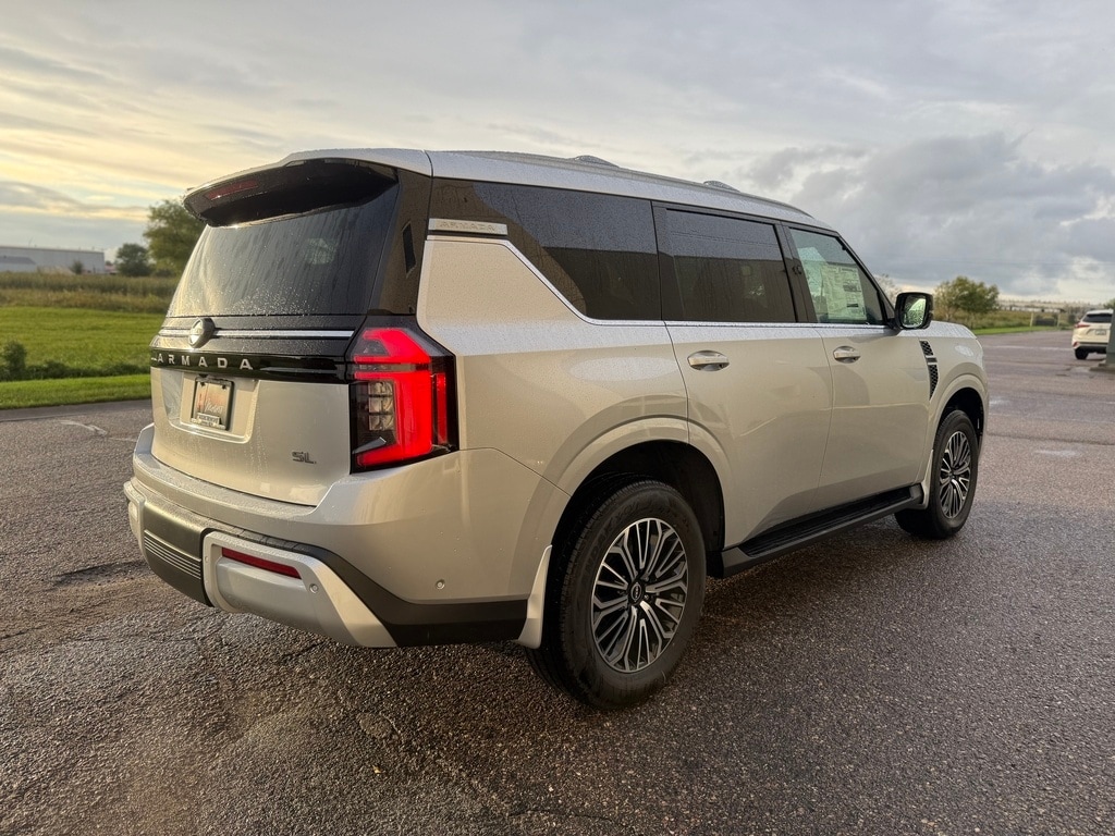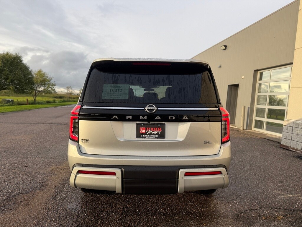 3.5L Twin Turbo V6 425hp 516ft. lbs. Harr Nissan is please to offer this 2026 Nissan Armada in Brilliant Silver Metallic, Beautifully equipped with 3.5L Twin Turbo V6 425hp 516ft. lbs. 12V power outlets: 2 12V power outlets, 3.5L Twin Turbo V6 425hp 516ft. lbs., 4WD type: All-Mode 4WD automatic full-time 4WD, 4X4, 50 STATE EMISSIONS - INCLUDES EMISSIONS: LEV3-ULEV50 EMISSIONS,EMISSIONS TIERS: TIER 3 BIN 50 EMISSIONS, 9-Speed Shiftable Automatic, ABS Brakes: 4-wheel antilock (ABS) brakes, ABS Brakes: Four channel ABS brakes, Accessory power: Retained accessory power, Adaptive cruise control: Intelligent Cruise Control (ICC) w/Full Speed Range and Hold, Air conditioning: Yes, All-in-one key: All-in-one remote fob and ignition key, Alternator Type: Alternator, Ambient lighting, Amplifier: Premium grade amplifier, Antenna: Integrated roof audio antenna, Armrests front center: Front seat center armrest, Auto door locks: Auto-locking doors, Auto headlights: Auto on/off headlight control, Auto high-beam headlights: High Beam Assist (HBA) auto high-beam headlights, Auto tilt steering wheel: Auto tilt-away steering wheel, Auto-dimming door mirror driver: Auto-dimming driver side mirror, Auto-dimming door mirror passenger: Auto-dimming passenger side mirror, Automatic brake hold, Automatic curve slowdown cruise control: ProPILOT Assist with Navi-link Automatic curve slowdown cruise control, Autonomous cruise control: ProPILOT Assist 1.1 hands-on cruise control, Basic warranty: 36 month/36,000 miles, Battery charge warning, Battery run down protection, Battery type: Lead acid battery, Bench seats: Third-row split-bench seat, Beverage holders rear: Rear beverage holders, Beverage holders: Front beverage holders, Blind spot: Intelligent Blind Spot Intervention (I-BSI), Body panels: Fully galvanized steel body panels with side impact beams, Brake assist system, Brake type: 4-wheel disc brakes, Built-in virtual assistant: Google Assistant built-in virtual assistant, Bumper rub strip front: Black front bumper rub strip, Bumper rub strip rear: Black rear bumper rub strip, Bumpers front: Body-colored front bumper, Bumpers rear: Body-colored rear bumper, Cabin air filter, Camera: HD Enhanced Intelligent 3D Around View Monitor (I-AVM) (3D Fixed Views) aerial view camera, CAPTAIN'S CHAIR SEAT PACKAGE - INCLUDES 2ND ROW OUTBOARD CAPTAIN'S CHAIRS WITH ARMRESTS,SEATING CAPACITY: 7,REAR HEAD RESTRAINT CONTROL: 2 REAR SEAT HEAD RESTRAINTS,CONSOLE: REAR CONSOLE,CONSOLE STORAGE: ADDITIONAL CONSOLE STORAGE,ARMRESTS REAR MOUNTED: SECOND-ROW OUTBOARD-ONLY MOUNTED ARMRESTS,2ND ROW CENTER CONSOLE WITH TWO CUPHOLDERS,NUMBER OF BEVERAGE HOLDERS: 12 BEVERAGE HOLDERS,EZ FLEX SECOND ROW SEATING SYSTEM WITH ONE TOUCH RELEASE, Cargo access: Power cargo area access release, Cargo floor type: Carpet cargo area floor, Cargo light: Cargo area light, Cargo tie downs: Cargo area tie downs, CARPETED FLOOR MATS - CAPTAIN CHAIRS - INCLUDES FLOOR MATS: CARPET FRONT AND REAR FLOOR MATS,CARGO MATS: CARPET CARGO MAT,FIRST AID KIT, CENTER FRONT SPOILER, Child door locks: Manual rear child safety door locks, Climate control: Automatic climate control, Clock: Digital clock, Compass, Compressor: Twin turbo, Concealed cargo storage: Cargo area concealed storage, Configurable instrumentation gauges, Console insert material: Metal-look console insert, Corrosion perforation warranty: 60 month/unlimited, Cruise control: Cruise control with steering wheel mounted controls, Cylinder head material: Aluminum cylinder head, Delay off headlights: Delay-off headlights, Digital signal processor, Door ajar warning: Rear cargo area ajar warning, Door bins front: Driver and passenger door bins, Door bins rear: Rear door bins, Door handle material: Body-colored door handles, Door locks: Power door locks with 2 stage unlocking, Door mirror style: Black door mirrors, Door mirror type: Standard style side mirrors, Door mirror with tilt-down in reverse: Power driver and passenger door mirrors with tilt down in reverse, Door trim insert: Leather door trim insert, Drive type: Four-wheel drive, Driver attention monitor: Driver Attention Alert (DAA), Driver foot rest, Driver information center, Driver lumbar: Driver seat with 2-way power lumbar, Driver seat direction: Driver seat with 8-way directional controls, Drivetrain selectable: Driver selectable drivetrain mode, Dual-zone front climate control, Electronic parking brake, Electronic stability control: Electronic stability control system, Emergency SOS Capable: NissanConnect Services vehicle integrated emergency SOS system, Engine block material: Aluminum engine block, Engine Cylinders: V6, Engine Location: Front mounted engine, Engine Mounting direction: Longitudinal mounted engine, Engine temperature warning, Engine: 3.5L V-6 gasoline direct injection, DOHC, variable valve control, twin turbo, premium unleaded, engine with 425HP, Engine/electric motor temperature gauge, External memory: External memory control, First-row windows: Power first-row windows, Floor console storage: Covered floor console storage, Floor console: Full floor console, Floor coverage: Full floor coverage, Floor covering: Full carpet floor covering, Fob engine controls: Intelligent Key with hands-free access and push button start, Folding door mirrors: Power folding door mirrors, Forward collision warning: Intelligent Forward Collision Warning w/Automatic Emergency Braking (AEB), Front anti-roll: Front anti-roll bar, Front anti-whiplash head restraints: Anti-whiplash front seat head restraints, Front camera: Front Wide View front mounted camera, Front head restraint control: Manual front seat head restraint control, Front head restraints: Height adjustable front seat head restraints, Front impact airbag driver: Driver front impact airbag, Front impact airbag passenger: Passenger front impact airbag, Front passenger lumbar: Front passenger seat with 2-way power lumbar, Front reading lights, Front seat upholstery: TailorFit leatherette front 