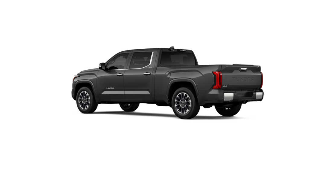 • Chrome 'TUNDRA' and 'LIMITED' door badges, door handles and window molding color-keyed mirror caps and tailgate spoiler gray-painted overfenders