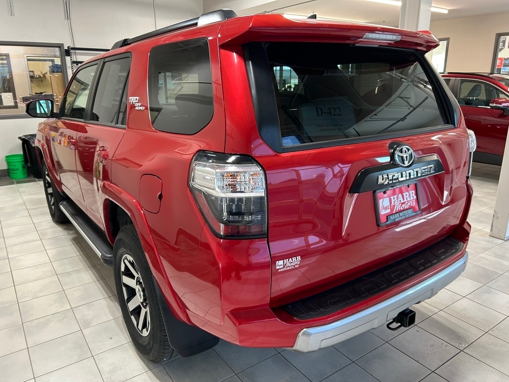 50 State Emissions, All-Weather Floor Liners and Cargo Tray Package, Door Edge Guards, Emergency Assistance Kit, Exhaust Tip - Black Chrome, High Performance LED Fog Lights - Black, Keep It Wild Savings, Power Tilt/Slide Moonroof, Running Boards - Chrome Detail, Trailer Ball Mount, USB Dual Power Port (Front Only) 2023 Toyota 4Runner Barcelona Red Metallic TRD Off-Road Premium CARFAX One-Owner Clean CARFAX Harr Motors has been proudly serving Aberdeen and surrounding area for over 50 years. For more information on this vehicle please stop by the dealership at 4255 6th Ave SE or call us at 605-225-3078.
